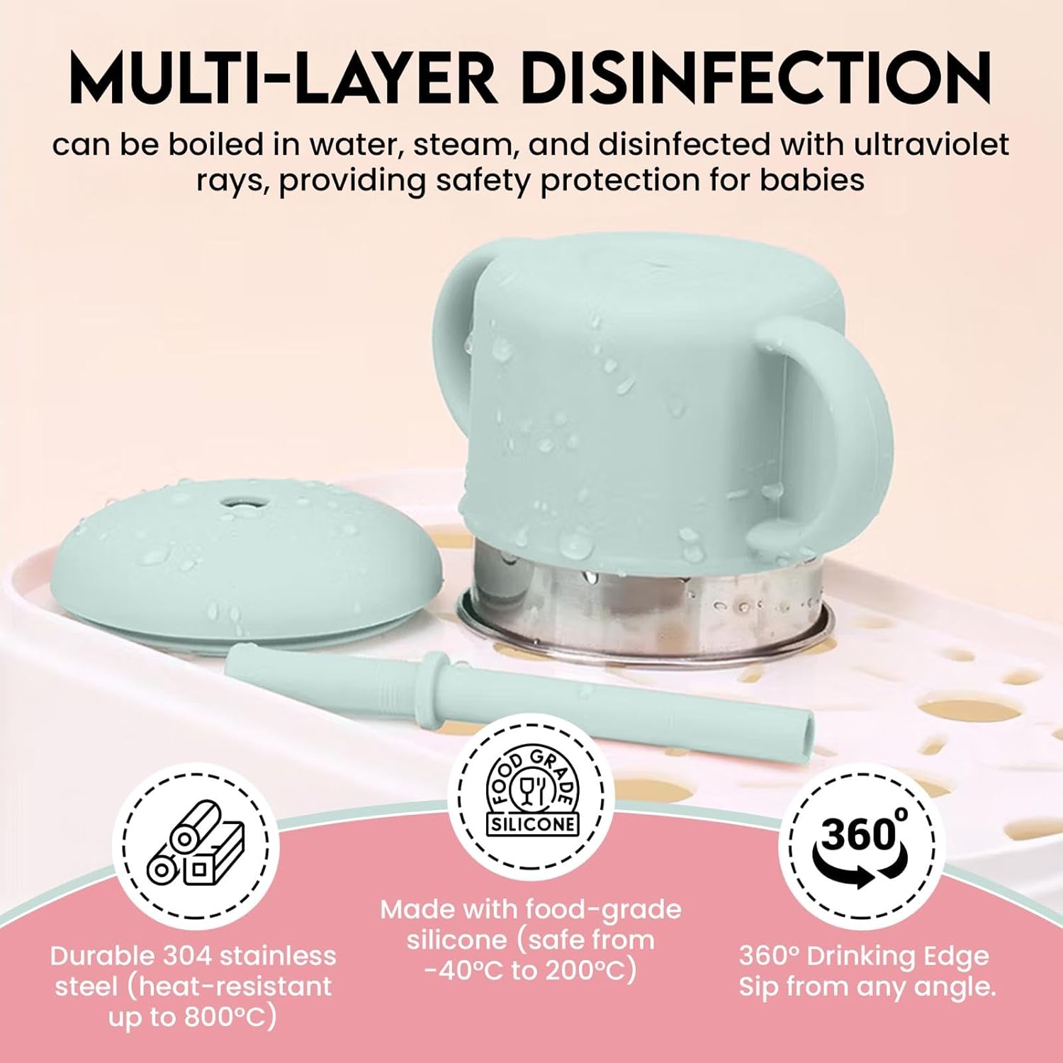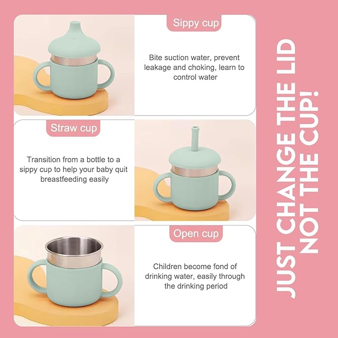 3in1 Sippy Cup designed for everyday life and perfect for indoor or outdoor use. Stain resistant, chip resistant, scratch proof, portable, anti-slip, and top-rack dishwasher safe for quick cleanup.